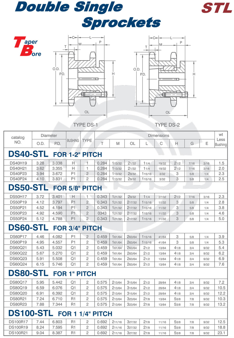 Range of product: ANSI:(DS40-STL/DS50-STL/DS60-STL/DS80-STL/DS100-STL) Inch size product (Apply to ANSI market) STL Double Single Sprockets