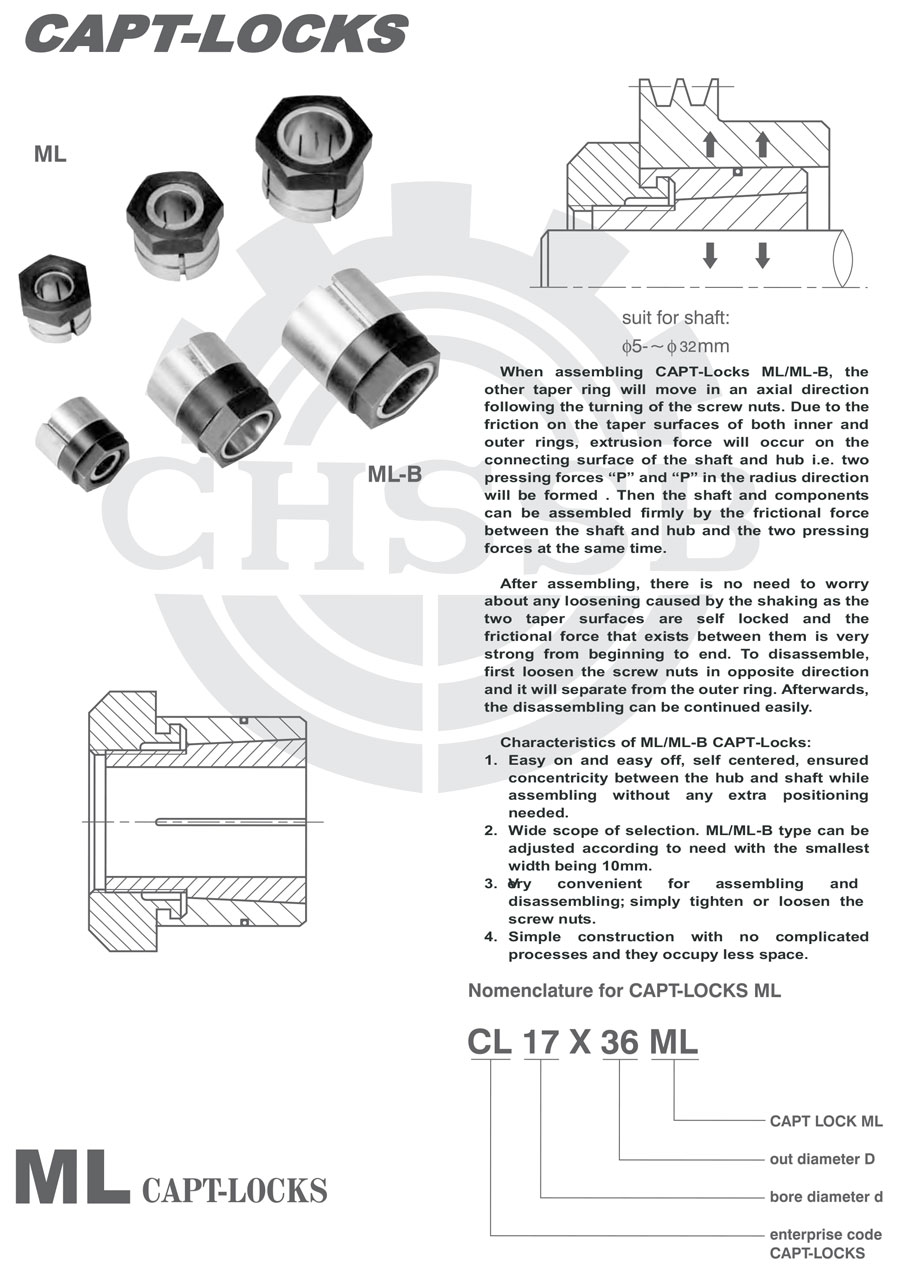 ML /ML-B NSPT-LOCKS has the characteristics of structure simplicity, easy self-installation, high concentricity,